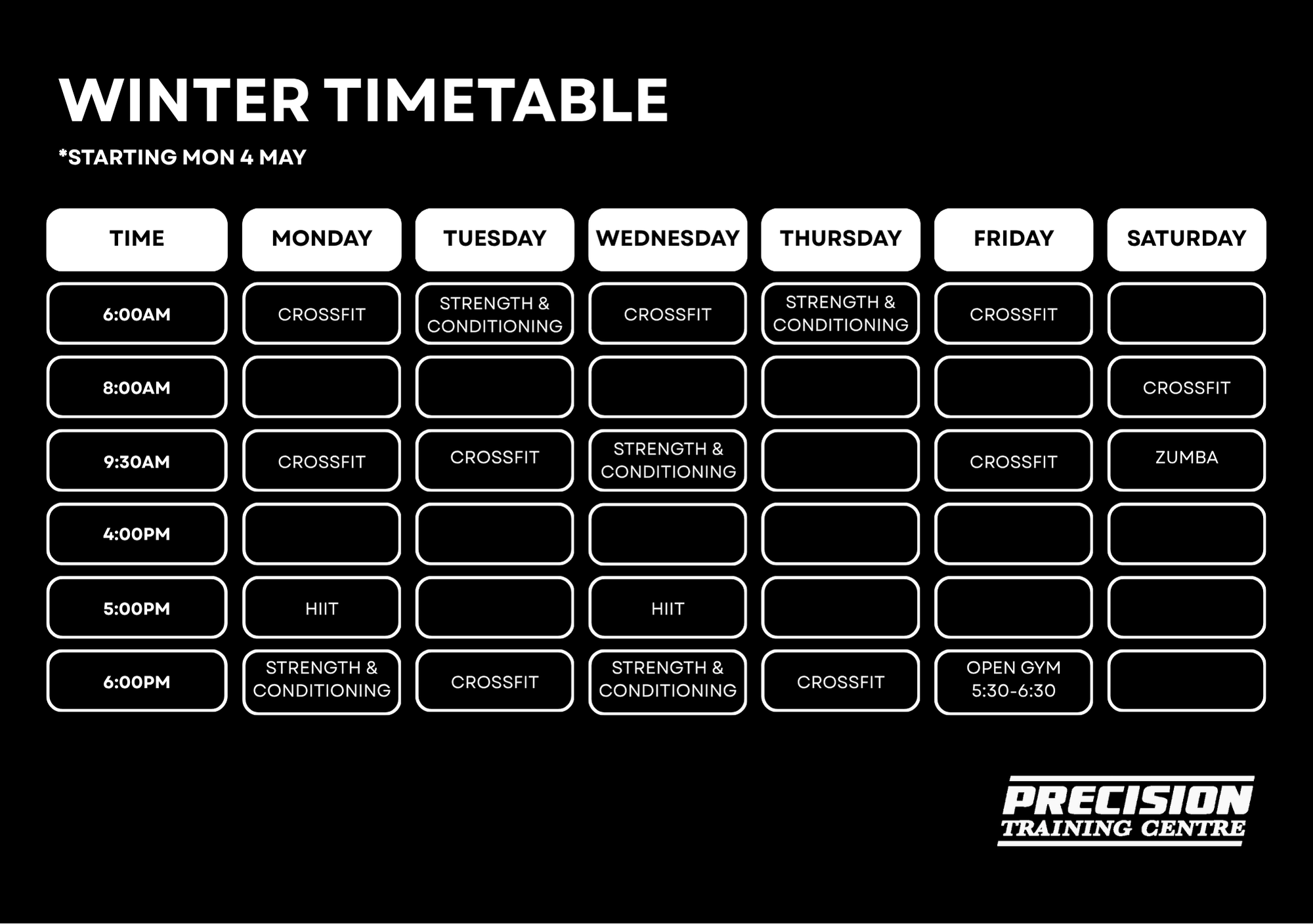Our CrossFit classes are every Monday, Wednesday and Friday at 6AM with a special bonus session Friday afternoon at 5:45PM if you’re game enough to kick your weekend off with a sweaty start! If you’ve never done CrossFit before, no stress! We are a beginner friendly gym and offer all the help you’ll need to feel stronger and ore confident in the gym!
